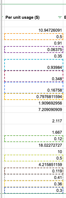 We haven’t updated our base costs to put together a bag. Below is how we are spreading our overhead costs into each bag.