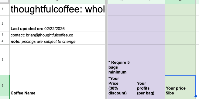 Our model doesn’t really fit well with pricey coffees. The price gets set to values I’m not comfortable selling my coffee at.